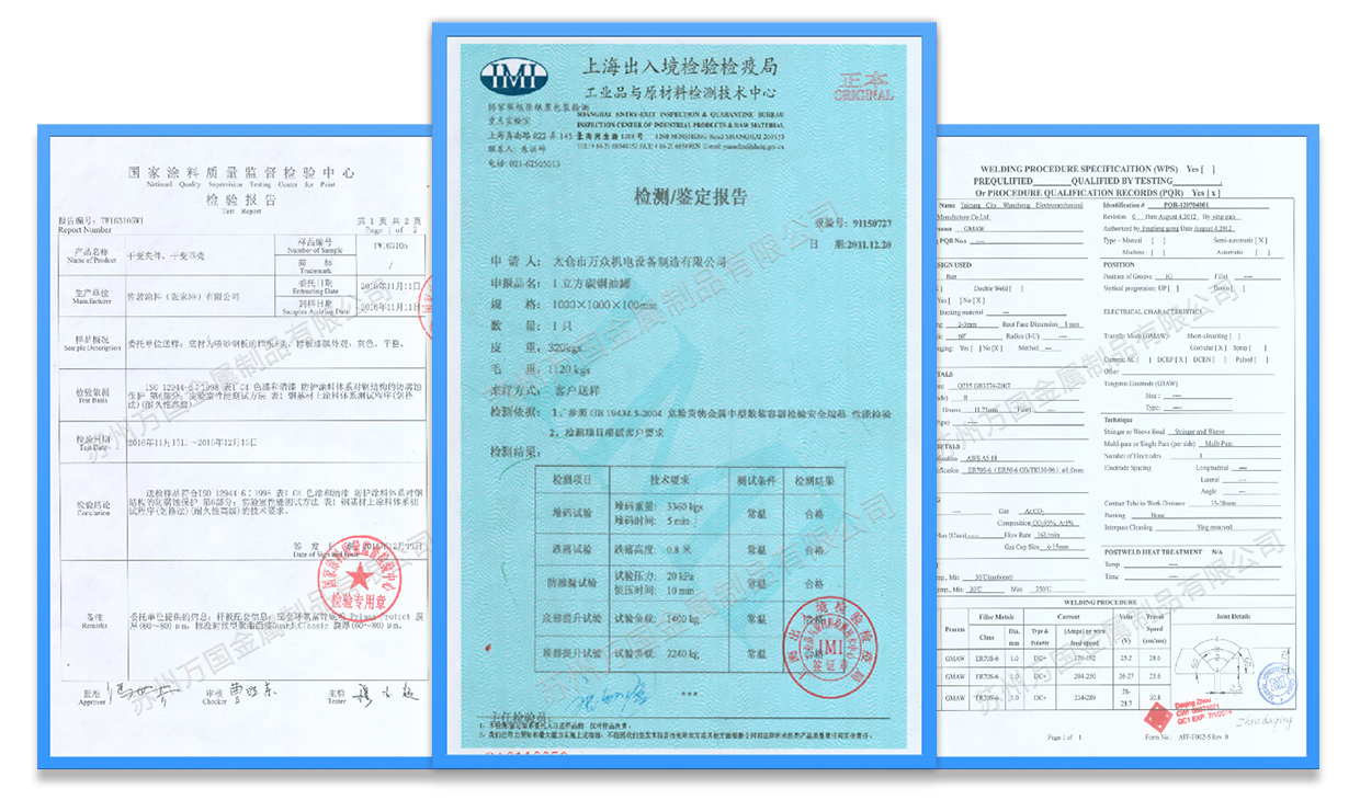 我們嚴(yán)格地運行生產(chǎn)過程的質(zhì)量管控和成品檢驗,并擁有WPS焊接工藝評定、C4-H防腐認(rèn)證、罐體鑒定檢測報告等,確保給客戶提供高品質(zhì)、高性能的產(chǎn)品